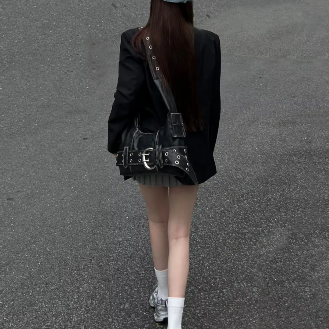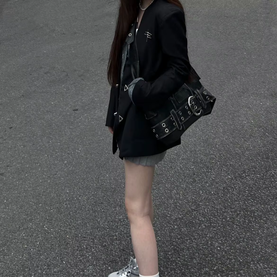 Vasket i dyp kullgrå og med bevisst frynsete kanter, bærer Ashen Denim Shoulder Tote den opprørske ånden fra vintage med et skarpt, moderne preg.