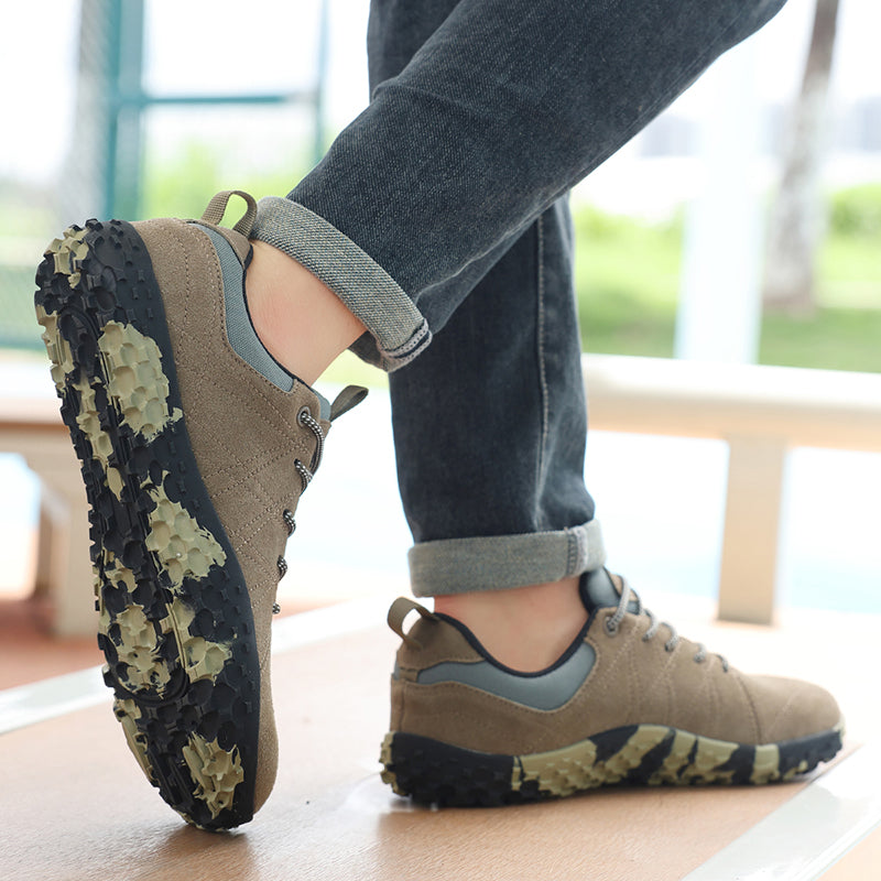 Flat, dempet såle: gjenoppretter ditt naturlige gangmønster, trener musklene ved hvert steg og beskytter mot farer som glasskår, varme, kulde og fuktighet.